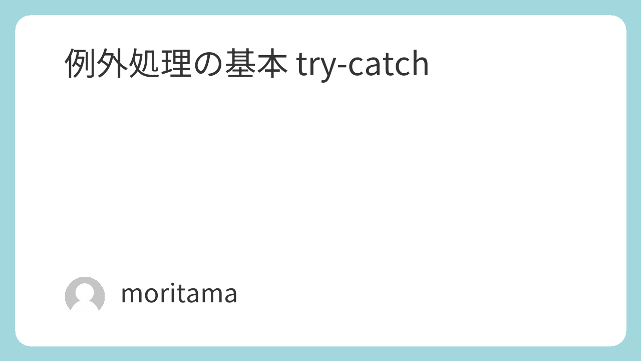 try-catchは、「もしかしたらエラーが起きるかもしれない処理」をtryブロックの中に書き、「もしエラーが起きたら、こんな風に対応してね」という処理をcatchブロックの中に書く、というものです。