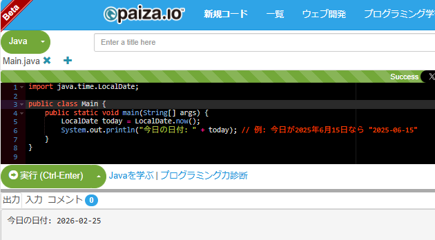 System.out.println("今日の日付: " + today); // 例: 今日が2025年6月15日なら "2025-06-15"