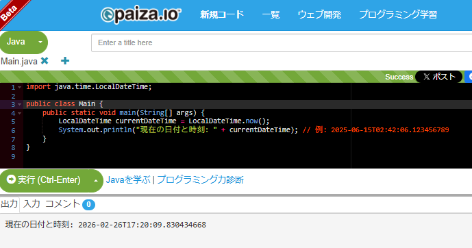 System.out.println("現在の日付と時刻: " + currentDateTime); // 例: 2025-06-15T02:42:06.123456789