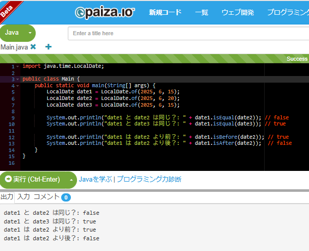 System.out.println("date1 と date3 は同じ?: " + date1.isEqual(date3)); // true