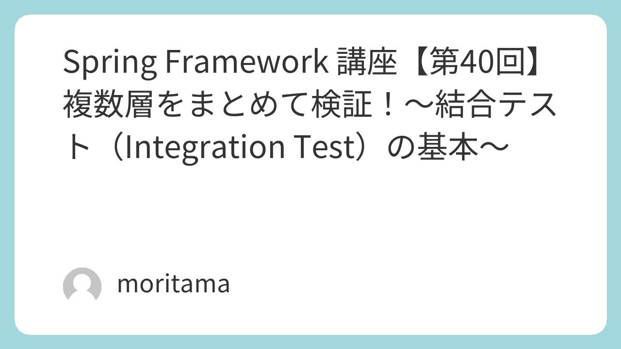 今回は、これらの複数の要素を結合して検証する**結合テスト(Integration Test)**の書き方を学びます。