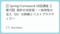 前回は、Spring Frameworkの核となる考え方、DI (依存性の注入) と IoC (制御の反転) について学びました。DI/IoCの目的は、「柔軟で変更に強いシステム」を実現することでしたね。
