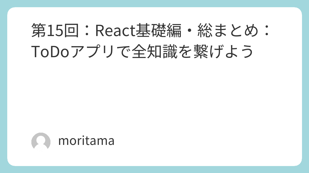 全25回のカリキュラムのうち、今回で「基礎編」が完結します。これまでに学んだ「JSX」「Props」「State」「Hooks」というバラバラのピースを、1つの実用的なアプリとして完成させましょう!