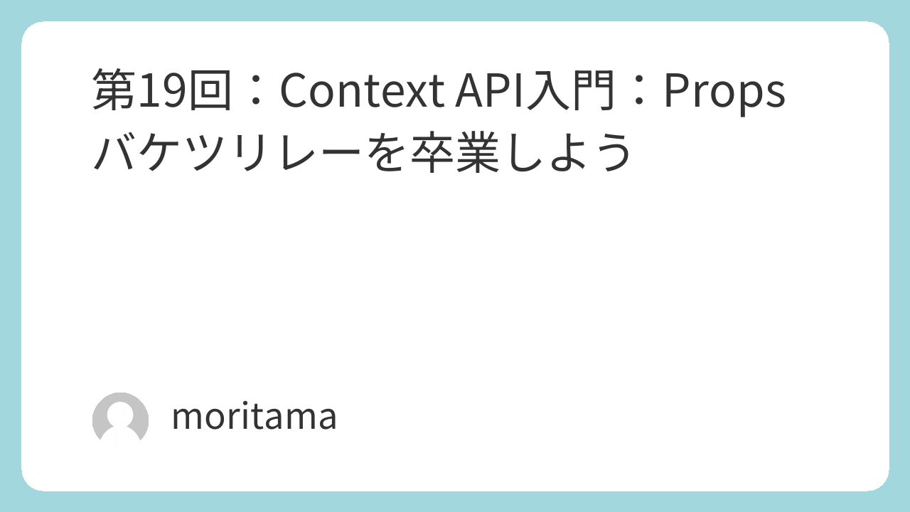- Context API は、Propsを使わずにデータを「ワープ」させる技術。